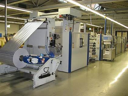 Applying an adhesive on the foil material and attaching a second reel material such as foil, film or paper laminates are produced (e.g. alu/paper, alu/film) as they are used for confectionery. Repeating this process with an already produced laminate multi layer materials are produced (e.g. alu/paper/alu) as they are used for butter wrappers or waffle foil. At Teich following laminating technologies are available: dry lamination, wet lamination and wax lamination.